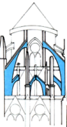 Durch die relativ leichte Bauweise wurden Stütz- und Strebebogen erforderlich .