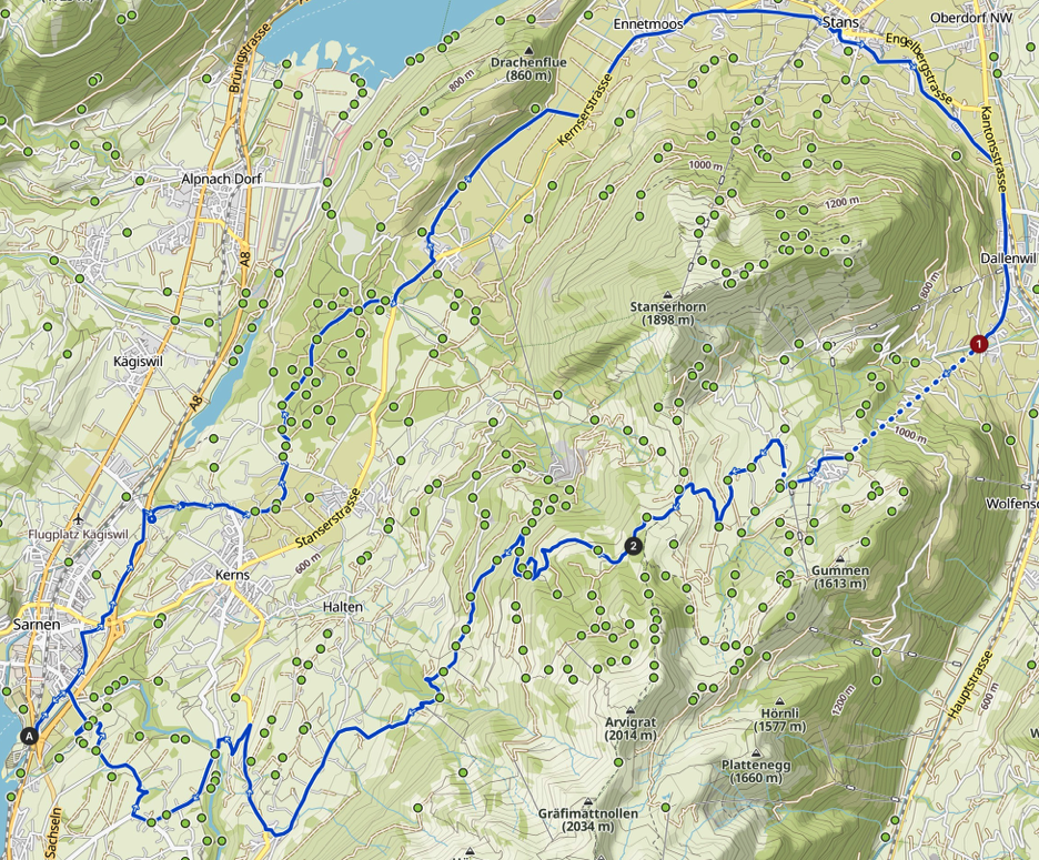 42 km; 650 hm (+ 610 hm per Seilbahn); 2:55 h
